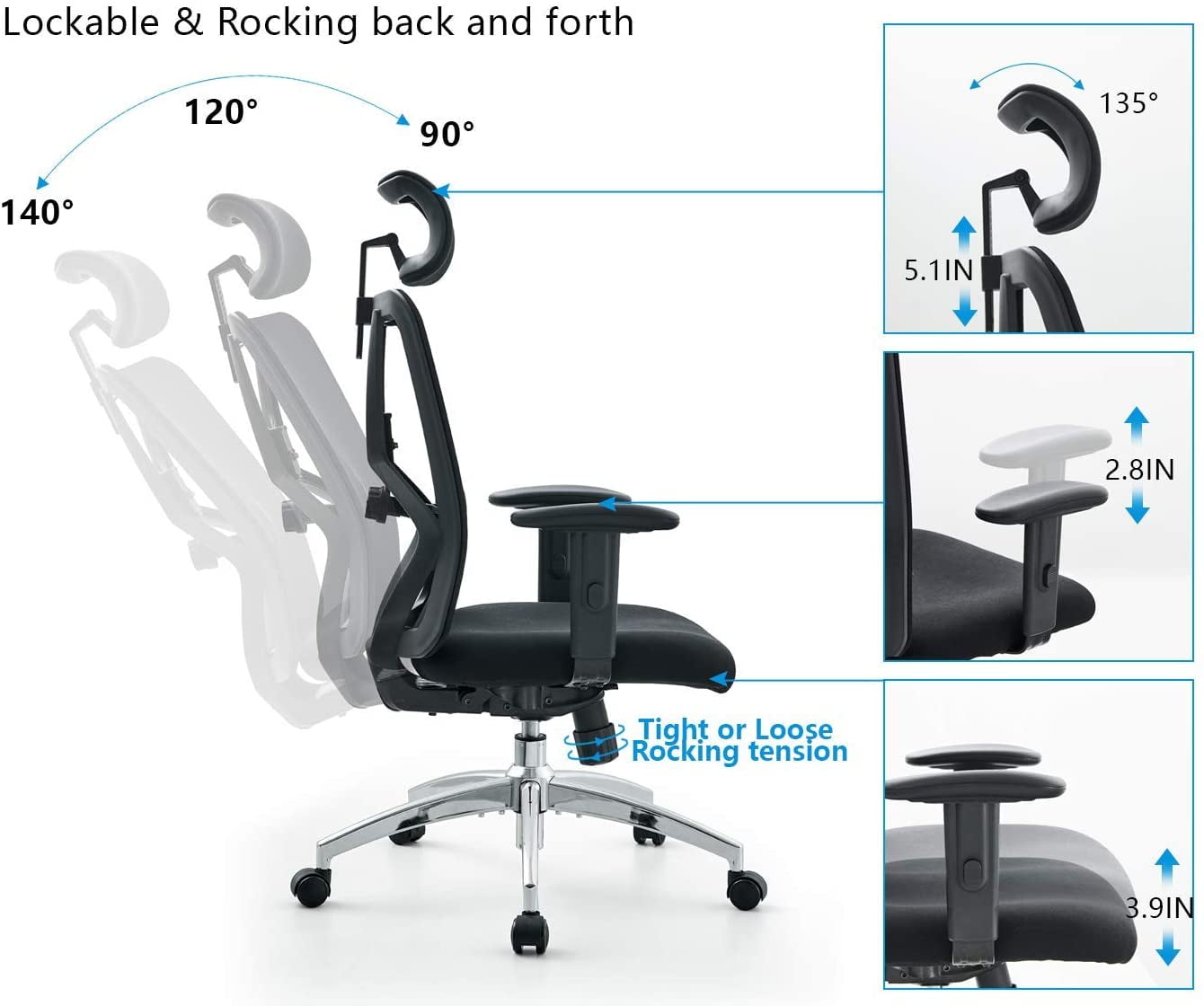 Real ergonomic adjustable chair almost every parts can be adjusted. Los Angeles Office Furniture Store. Ticova Ergonomic Office Chair is particularly designed to alleviate neck back and leg pain when sitting at a desk chair.